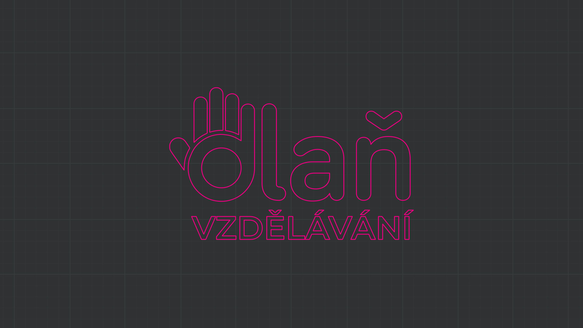 Pro vzdělávací a sociální projekt Dlaň vzdělávání byl navržen vizuální styl, který ztělesňuje podporu, lidskost a otevřenost. Dominantním prvkem loga je stylizovaná ruka, která se přirozeně prolíná s písmenem „d“ a symbolizuje pomoc, oporu a přístup založený na empatii. Typografie zvolené značky působí přívětivě, měkce a důvěryhodně, přičemž použitá kombinace sytě růžové a šedé barvy vytváří rovnováhu mezi energií, péčí a odborností.